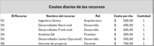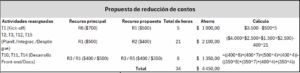 Por último, realizaron una propuesta con el objetivo de reducir el costo del proyecto modificando los recursos encargados de realizar algunas tareas específicas, entre los cambios propuestos están: